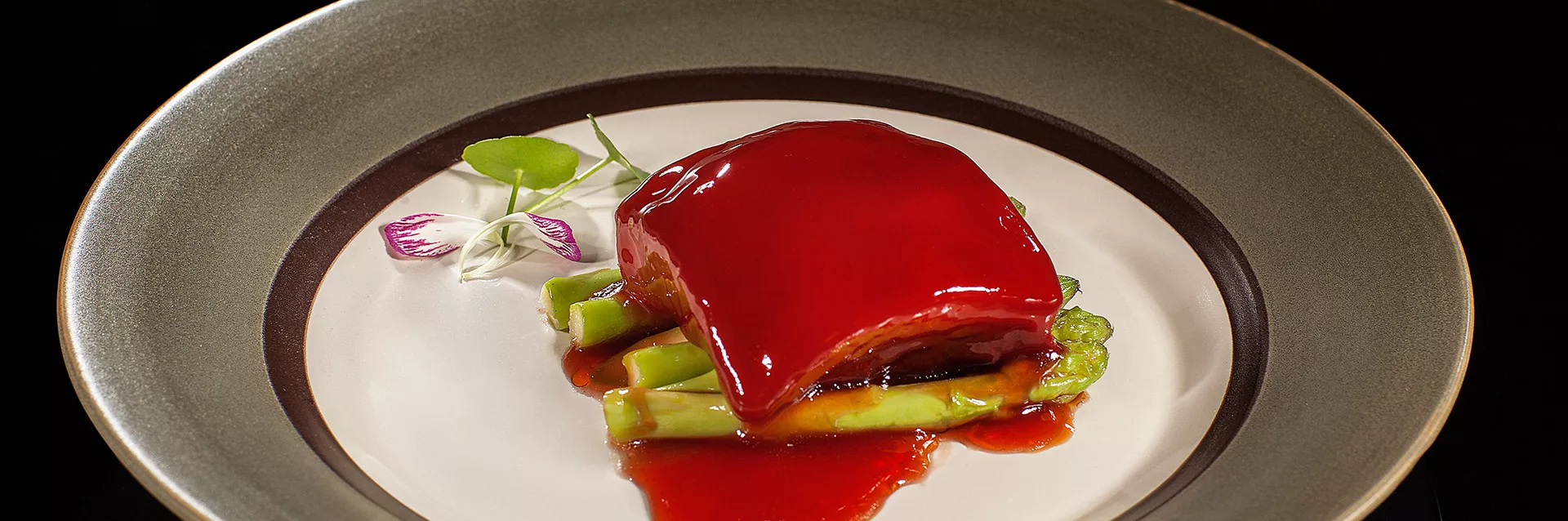 三、将芦笋烫熟垫入盘底,牛头方和火腿片盛芦笋上,取原汁用旺火收浓后,加味精、香油,浇在牛头方上即成。